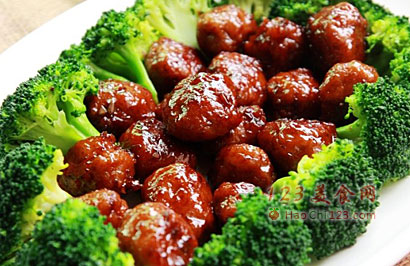 10、把做好的丸子放在中间(图15和图16)。