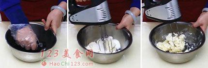 2、鸡蛋和牛奶也需要用常温的,温度过底不利入融入奶酪糊。
