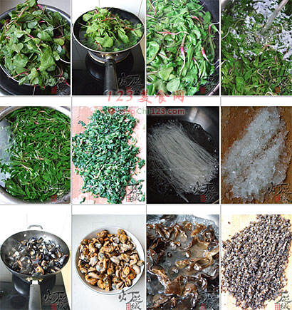 5、黑木耳提前泡发,用前入开水中焯烫之后浸凉,沥干水分后剁碎备用。