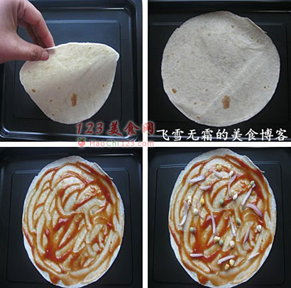 二、做法:1、准备一张饼底。