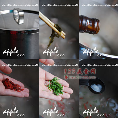 6、至自己喜欢的软烂程度,挑出葱结,放少许料酒,放入盐调味,放枸杞,葱花,关火,盖上锅盖焖一会儿即可。