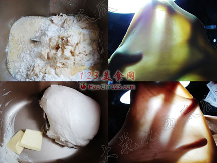 3、放入黄油继续搅拌20分钟(也是先“发面团”程序即可)。