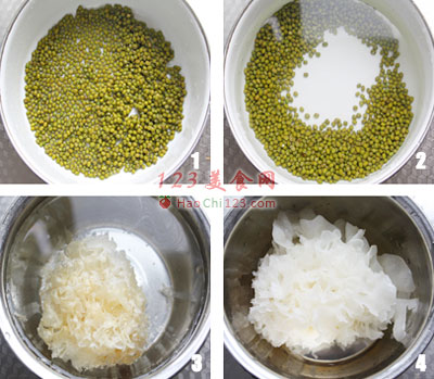 2、天热时浸泡绿豆和银耳要放在阴凉地方,偶是为了省事泡一夜后早上做的,实际泡几个小时也可。[LaoYanHuo.com]