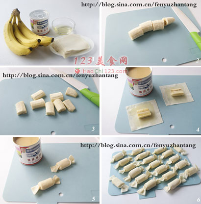 2、炼奶香蕉糖果最好热着吃,凉了皮会变硬。[LaoYanHuo.com]