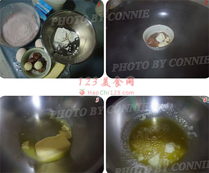 2、奶油加热熔化(图3),继续加热到变成褐色的奶油(图4),放凉待用。
