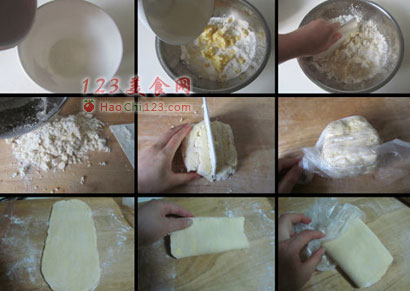 1、派皮的关键是把所有材料制冷做好准备,如果揉黄油和面团的时间太长,就会失去酥脆的口感。
