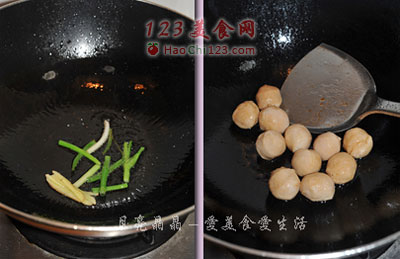 2、下虾丸,加一勺生抽同爆炒至有香味。