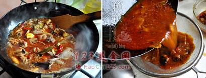 3、熬酱汁。成就咸鲜香辣口感的酱汁,要单独准备好,香辛料、酱料煸炒之后再熬煮,熬煮至各种料味交融,再加入鸭块中焖烧。这样做的目的有二,一是制成的酱汁香型更饱满,二则可以有效的缩短鸭肉的焖制酱烧时间,不会出现酱料还没熬煮到位鸭肉已经柴掉了的现象。[LaoYanHuo.com]