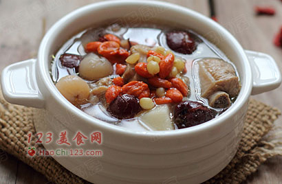 3、山药枸杞排骨汤,清淡不油腻,是一款适合一家大小的汤,具有清虚热、固肠胃、健脾胃的功效。尤其适合老人和小孩。