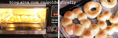 10、甜甜圈面包出炉后放置待不烫手,备用。