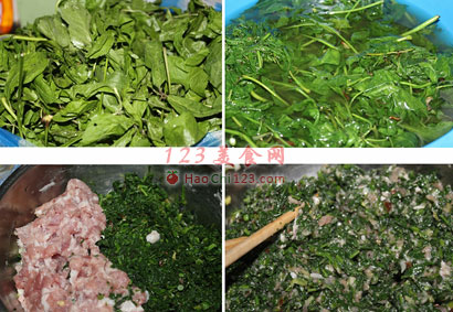 2、锅里烧开水,把叶子放进去焯一下,捞出来泡在冷水里,然后攥去水分。