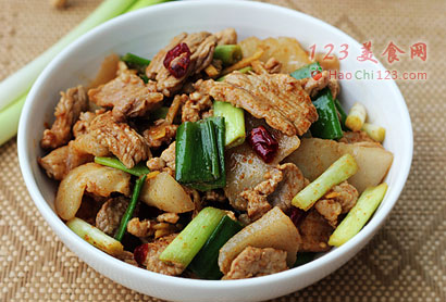 5、想要风味更独特的,可以在炒肉之前用少量啤酒腌制一下肉片,炒出的肉不但嫩而且风味独特。[LaoYanHuo.com]