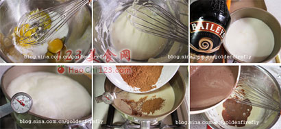 3、做法2中加入已混和过筛的可可粉+肉桂粉,与奶混和并尽量无颗粒状态。