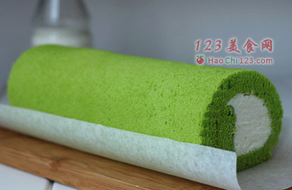 25、将蛋糕卷起,入冰箱冷藏半小时,定型后切去蛋糕卷边缘不平整的部分。