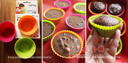 7、蛋糕糊平均装入马芬模中,约七-八分满。