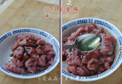 2、再加入一勺色拉油拌匀腌制10分钟。