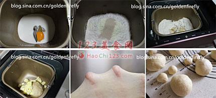 2、和面完成后加盖松弛10分钟,之后继续加入黄油块,再度进行和面功能15分钟,面团出现薄膜状态。