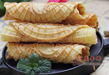 12、取出,趁热用筷子从一头卷起,并轻轻压一下定型,然后抽出筷子就行了。