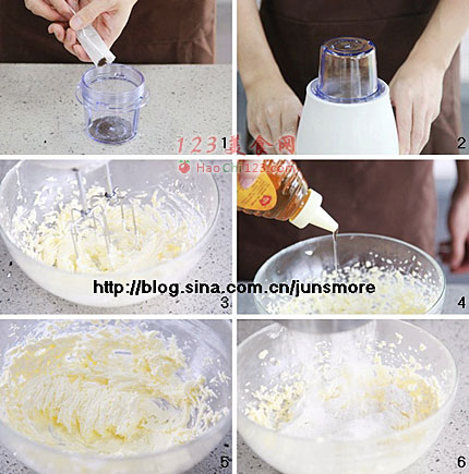4、在黄油里加入蜂蜜,继续搅打均匀。
