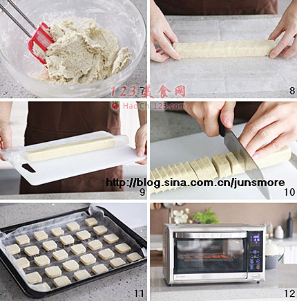 1、这款饼干制作很简单,但要注意整形的时候,如果面团比较黏,手上拍一些干面粉防粘,而且手不要长时间和面团接触,否则容易粘在手上。尽量整形得漂亮、方正一些,切出来的饼干才好看。