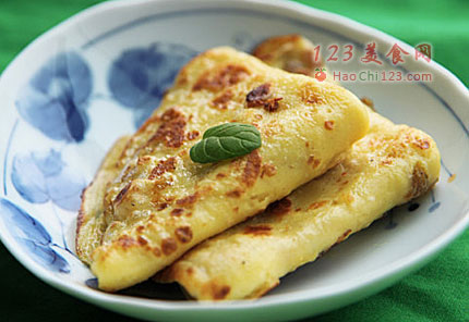 5、再加少油煎至两面金黄,叠成三角即可装盘,配牛奶果汁享用。[sushi.laoyanhuo.com]