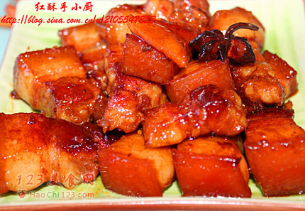 5、一碗米饭,一盘青菜,配上这诱人的红烧肉,怎能不让人食欲大开。[sushi.laoyanhuo.com]