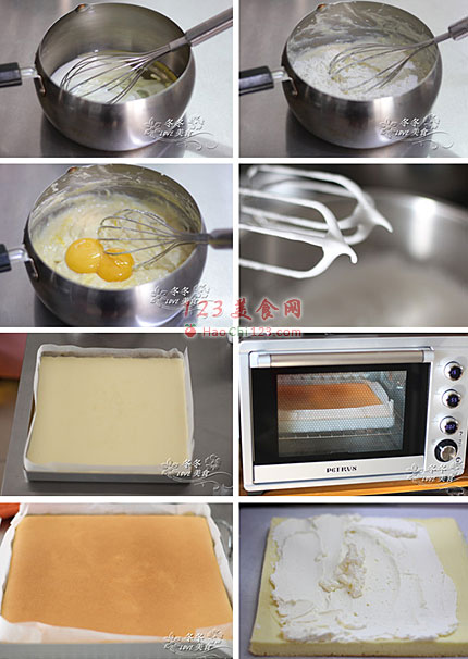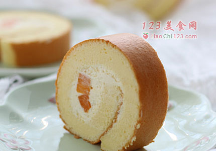 8、冷完后加入打发的淡奶油,卷起来定型再切。