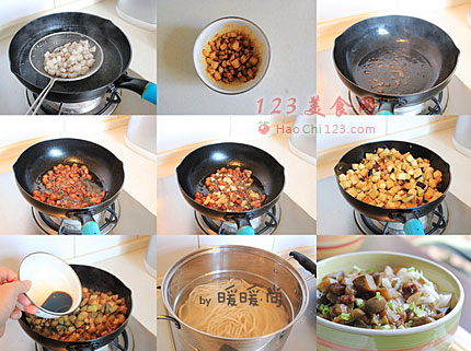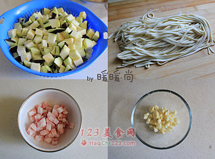 13、煮好的面条可以稍微过一下凉水会比较筋道,浇上我们步骤11中炒好的茄丁卤再撒上些香葱花就可以吃了。