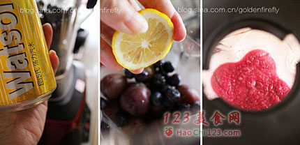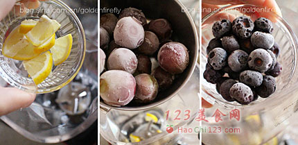 2、蓝莓冰冻;柠檬外皮用盐巴洗净后,连皮带肉取20克备用。