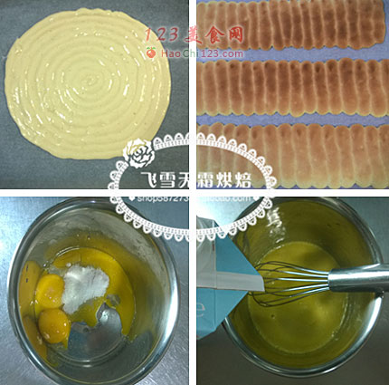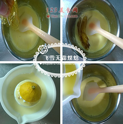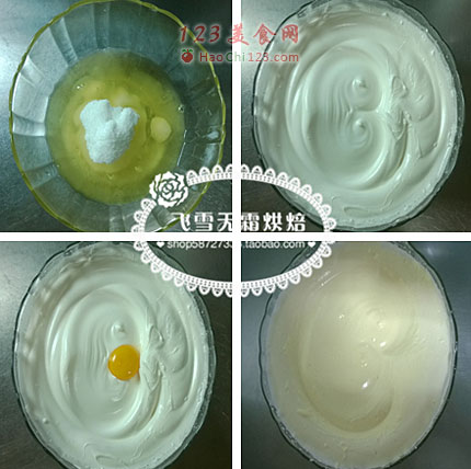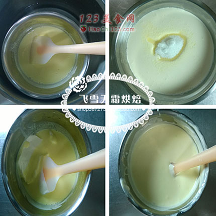 20、倒入蛋黄牛奶糊中搅拌均匀。