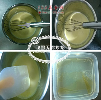17、将泡软的吉利丁片倒入蛋黄牛奶糊中。