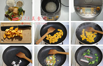 6、加少许食盐、水将南瓜炖熟,加少许香菇粉出锅。