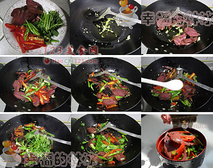 3、加入腊猪舌同炒。