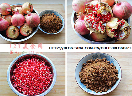 2、石榴籽放入无油无水的容器中,加入红糖,倒入凉开水,搅拌均匀使红糖全部化开。