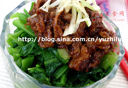 7、可以在做好的蛋酱菠菜上,洒上一些葱姜丝。[sushi.laoyanhuo.com]