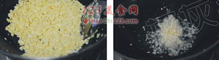 5、炒锅热油放蒜末爆香。