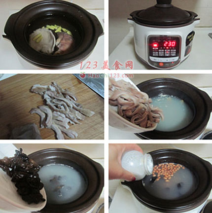 4、煲汤很容易,但如何能煲出一锅好汤呢?一是食材新鲜,这是鲜美汤品的基础;二是食材处理也很关键,就如同今天的猪肚,要用心处理,保证干净无异味;三是注意火候,所谓“旺火烧沸,小火慢煨”,就是家常煲汤诀窍。木耳花生,简单家常的食材,与猪肚搭配,汤色奶白,清润可口,滋润去湿,驱寒暖胃,常喝有益身心健康,不愧为男女老少皆宜的家庭靓汤。
