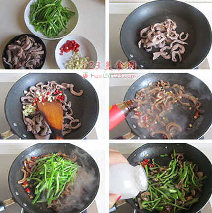 18、青椒变色微微发软后加入盐翻炒均匀即可。