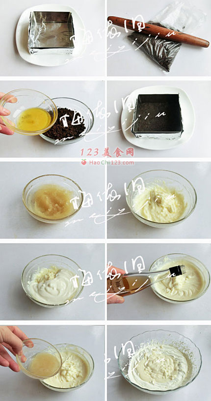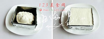 4、放入模具底部压实入冰箱冷藏至硬。