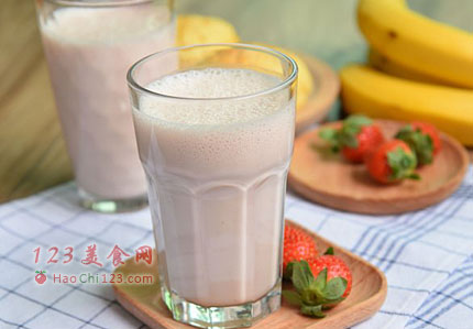 4、一杯气味芳香的草莓香蕉奶昔,搭配小点心,活力十足,提神又愉悦心情,不管早餐或者下午茶,一杯自然味道的鲜果奶昔绝对一级棒。