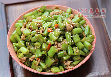 1、四季豆很清甜,所以人们总是喜欢让它和腊肉、橄榄菜和咸鱼等来配搭,因为用了霉香咸鱼,配上辣椒蒜头等料头,超级惹味。