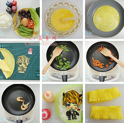 4、在蛋饼上画上鹿晗的图像,刻刀沿边沿取掉。