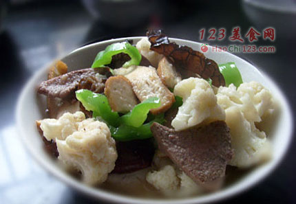 贴士:味道鲜美、营养相当的丰富、菜花是蔬菜中的上品,有增加免疫力的功能。猪肝含铁、锌、维生素A等比较丰富,适合少儿食用。[sushi.laoyanhuo.com]