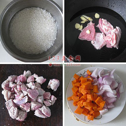 4、胡萝卜洋葱切小块。