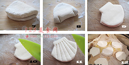 12、成型的贝壳馒头放置半小时左右,冷水上蒸锅蒸,水开后小火蒸十二分钟左右即可。