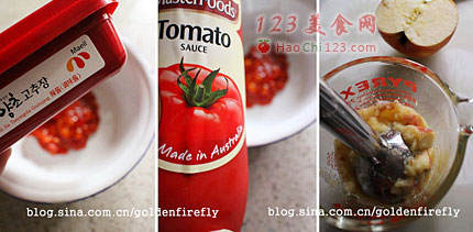5、材料C的韩式酱料混合均匀,再将材料D的果泥也混合均匀。