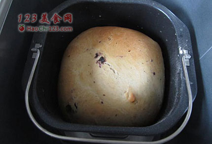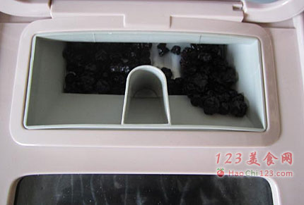 5、果料盒里加入蓝莓干按程度一会儿它会自动加入,没有果料盒可以跟黄油一起放。