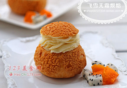 12、装入冷却的泡芙中或者挤在对半切开的泡芙体中。