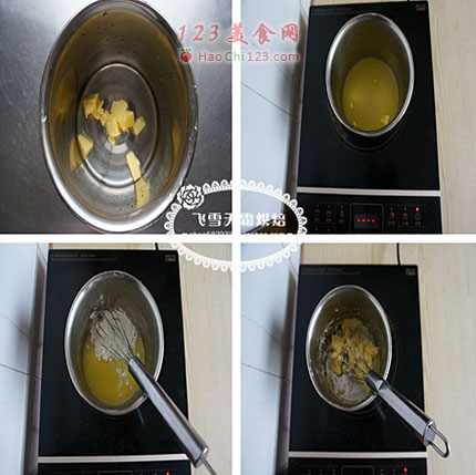 9、加入切成小块的黄油,搅拌至黄油融化。