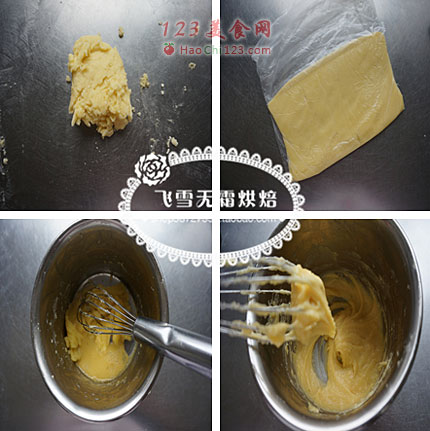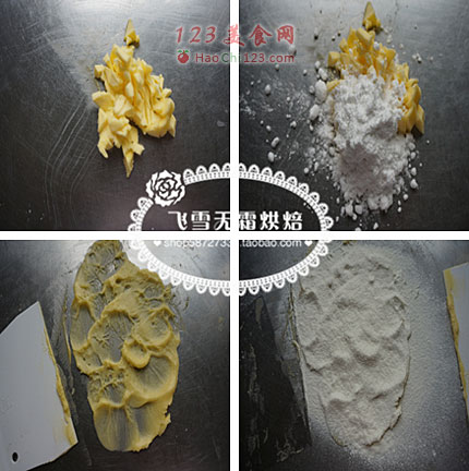 5、在放凉的过程中,制作酥皮,先将黄油切小块。